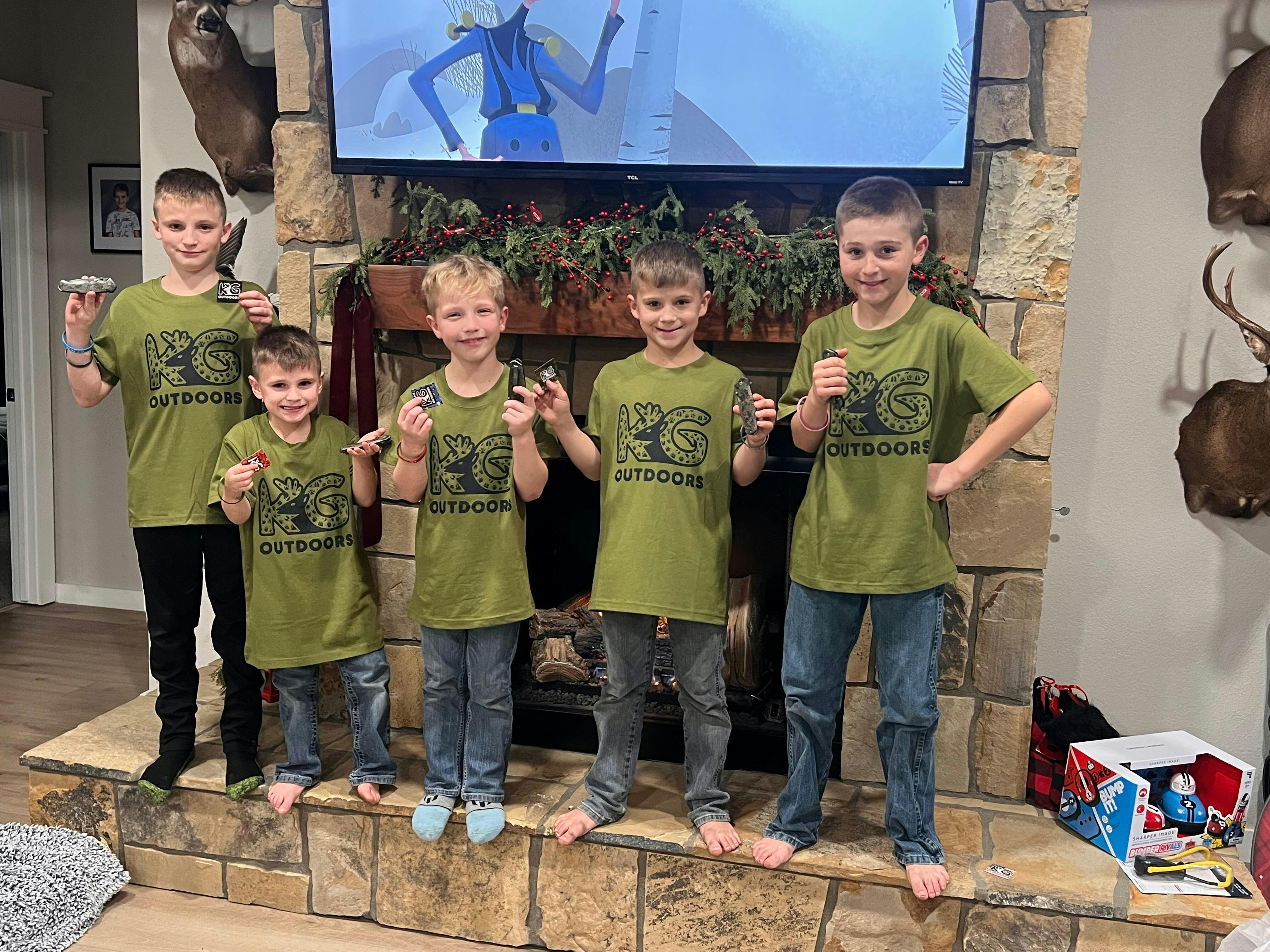 Got the Animal Tracks t-shirt, pocket knife and bracelet pack for my two boys and three nephews who love watching KG. One cried happy tears!